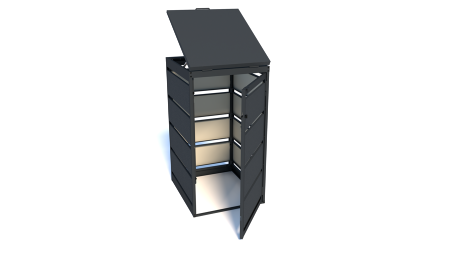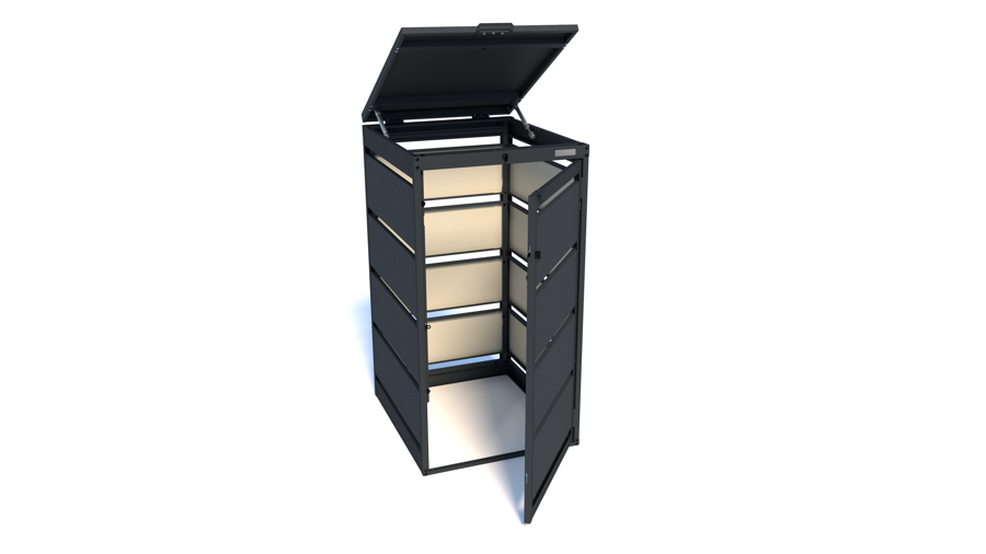 • Konstrukcijoje yra durys konteineriui įstumti.